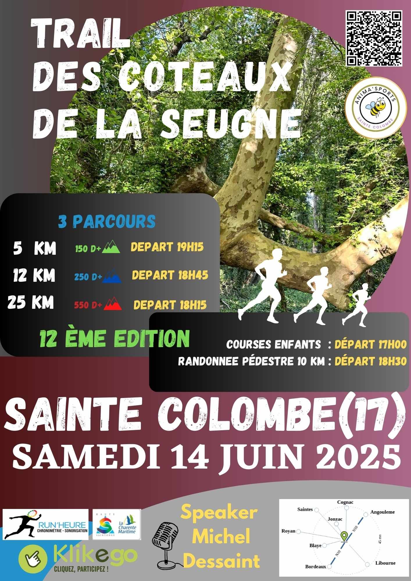 - Retrait des dossards : Maison des associations - Avenue du boulanger - 17210 Sainte Colombe / à partir de 17h