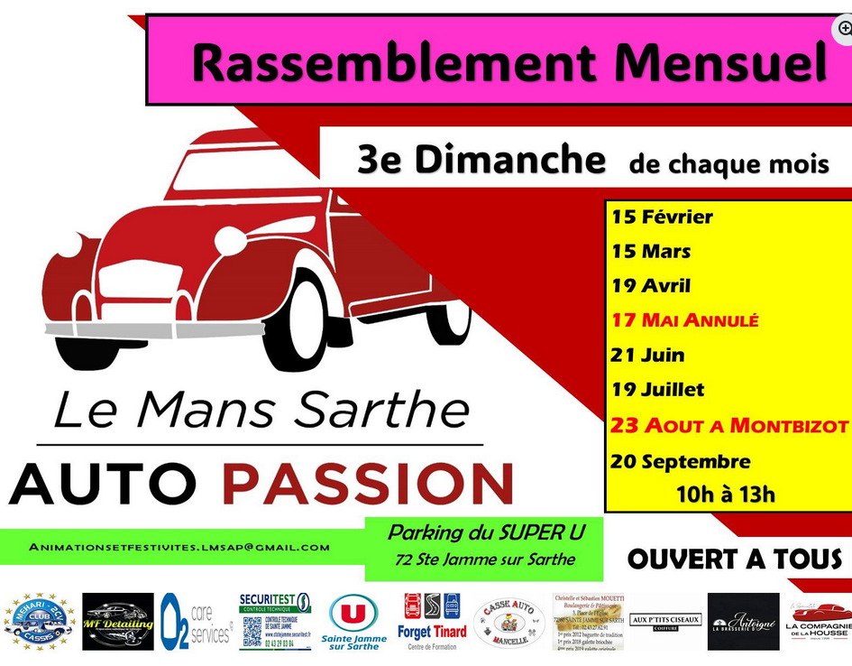 Rendez-vous le 3eme dimanche de chaque mois, de 10h à 13h, sur le parking du supermarché Super U à Sainte-Jamme-sur-Sarthe.