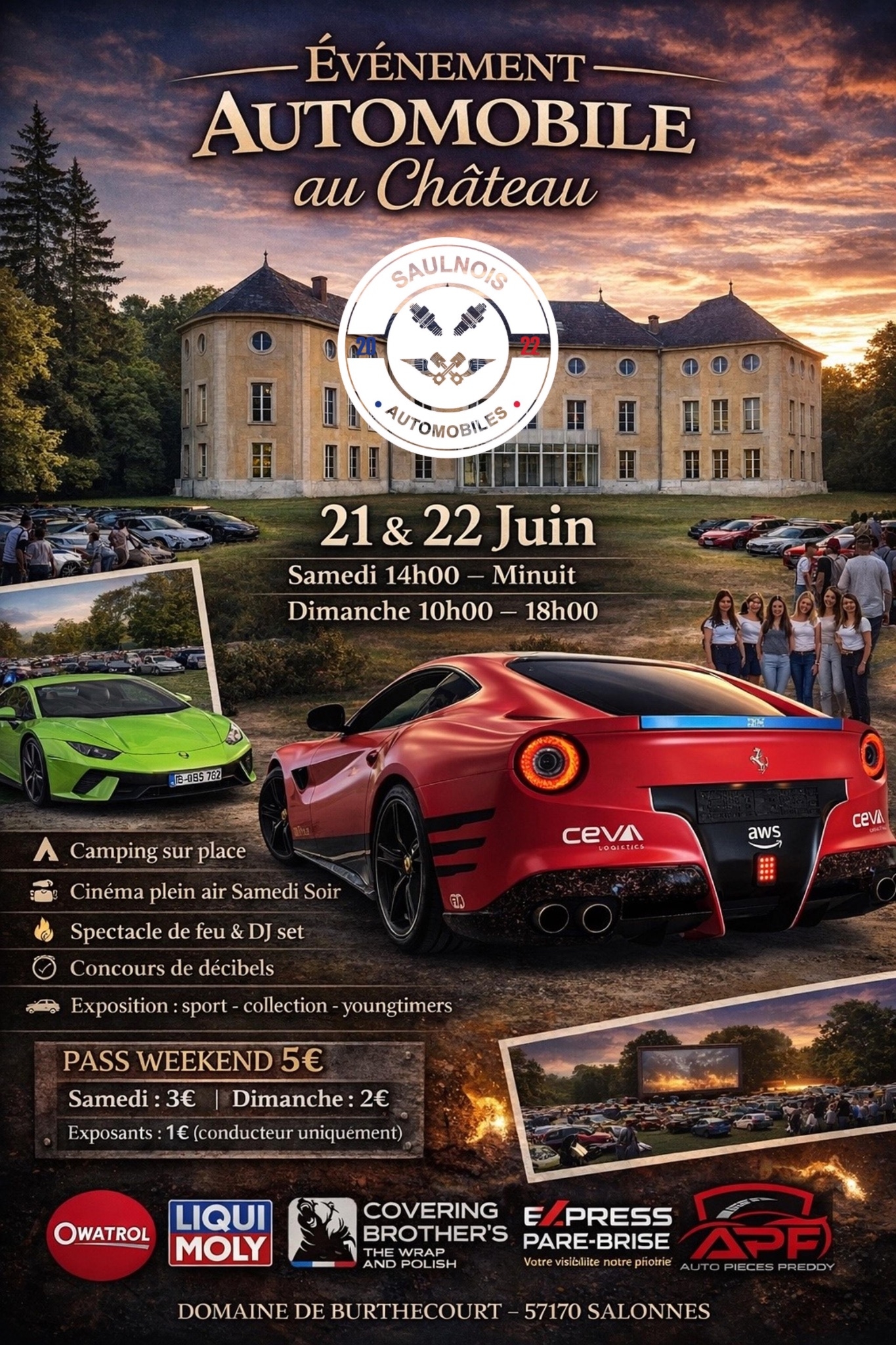Rendez-vous le Samedi 20 Juin à partir de 14h et Dimanche 21 Juin toute la journée au Domaine de Burthécourt, 57170 Salonnes, des panneaux de signalisations seront la pour vous indiquer le chemin.