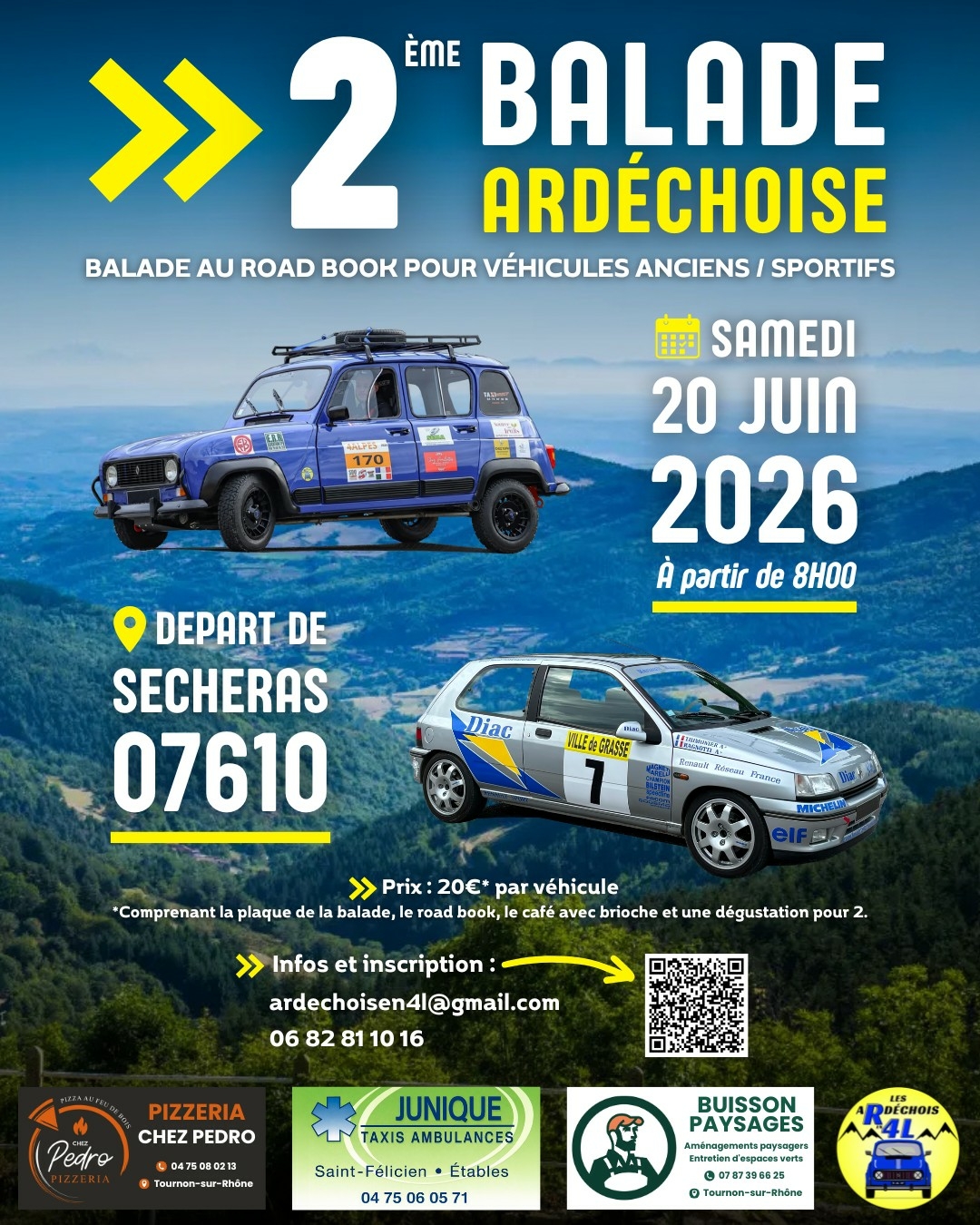 Nous vous donnons rendez-vous le samedi 20 Juin 2026 pour notre balade de voitures anciennes et sportives !