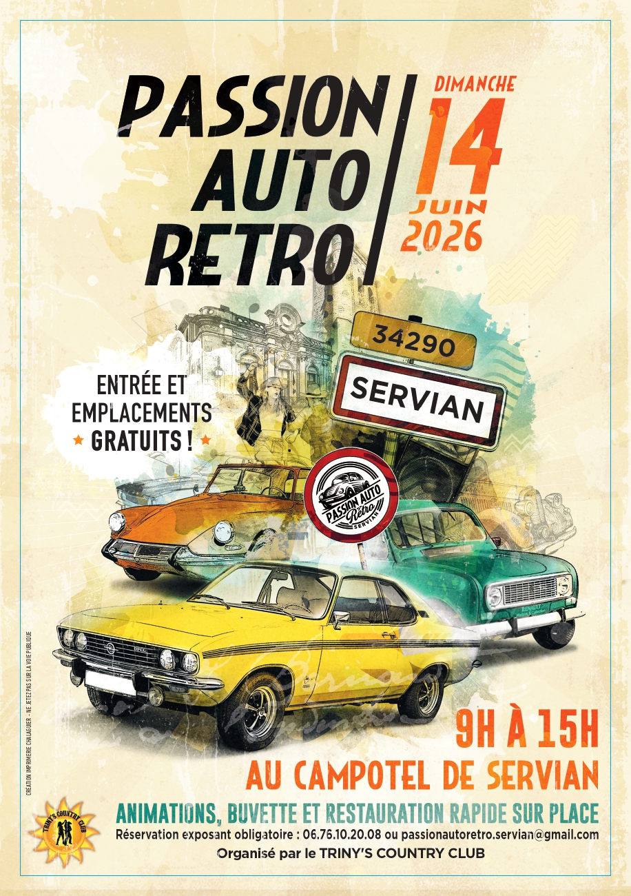 Le PARS (Passion Auto Rétro Servian) organise son 4e rassemblement de voitures anciennes sur l’aire du campotel de Servian le 14 juin 2026, de 9h00 à 15h00.