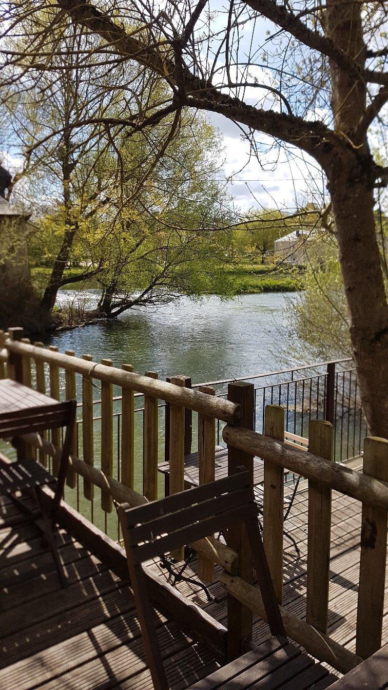 Vous pourrez à votre gré manger sur le ponton qui surplombe le Loir face au coucher du soleil ou encore dans le restaurant devant l'énorme roue à eau mise en valeur devant une grande baie vitrée.