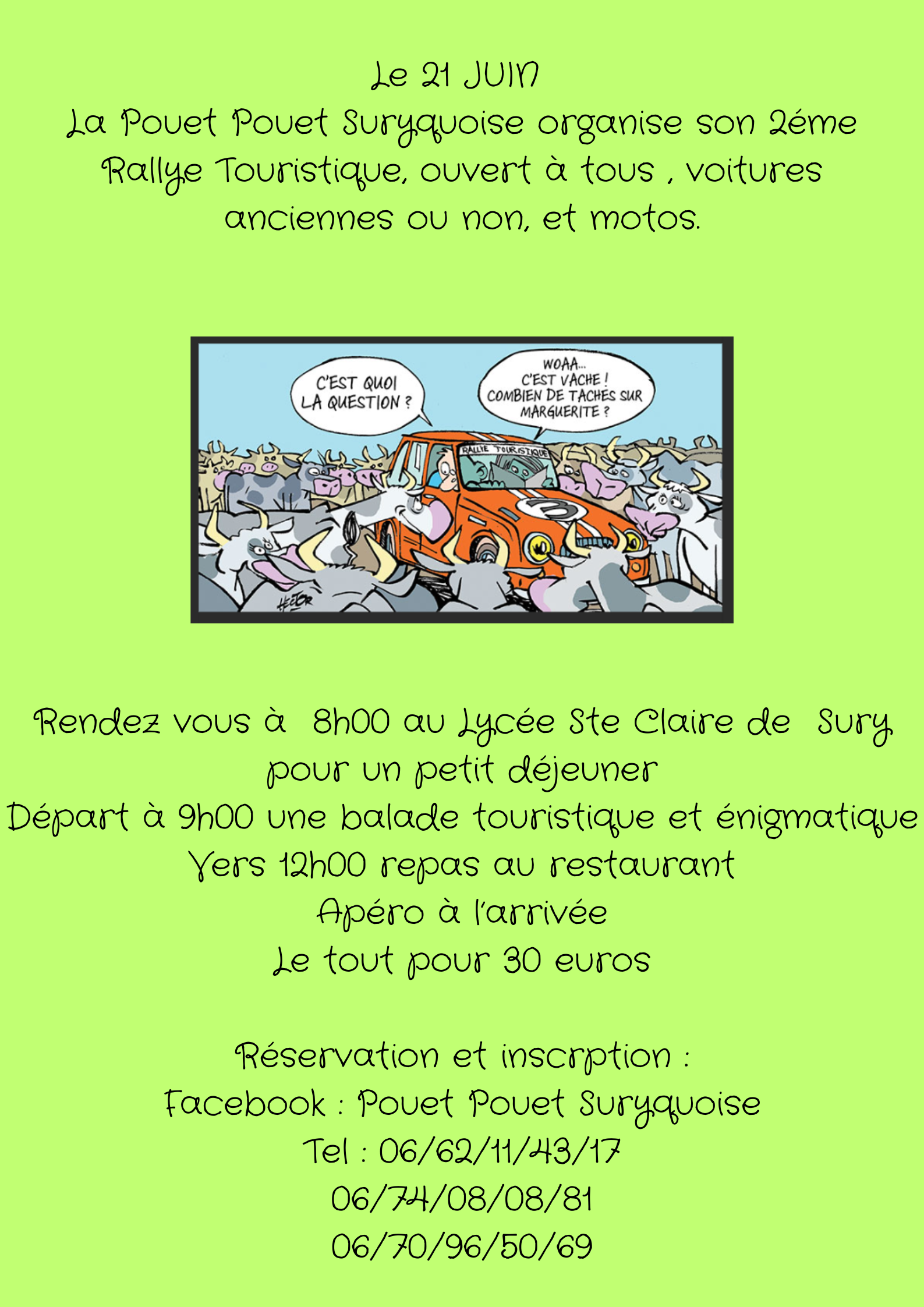 La Pouet Pouet suryquoise organise son 2éme Rallye Touristique, ouvert à tous, voitures anciennes ou non, et motos.