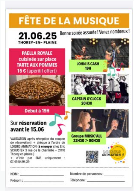 Loisirs Animation organise la Fête de la Musique le samedi 21 juin autour de la salle polyvalente de Thorey en Plaine.