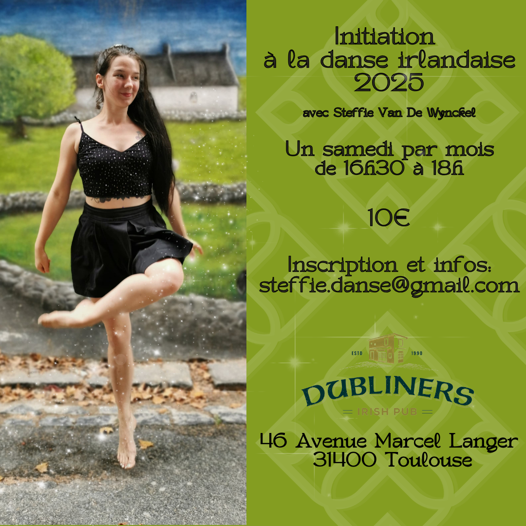 Steffie vous propose une initiation de 1h30 aux bases de la technique de danse irlandaise "soft-shoe" (sans claquettes) dans un cadre bienveillant, ludique et convivial au sein du pub toulousain Le Dubliners.