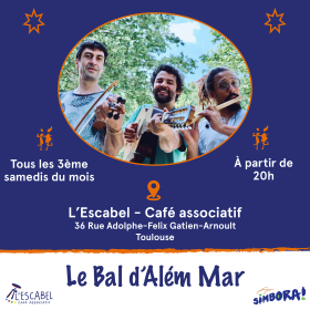 Parmi ses nombreuses activités tournées vers toutes les générations et toutes les envies, l’Escabel, en partenariat avec l'association Simbora, ouvre ses portes tous les 3ème samedis du mois pour accueillir un bal aux couleurs du Brésil et de l’Occitanie avec :=> Bal d’Além Mar <=
