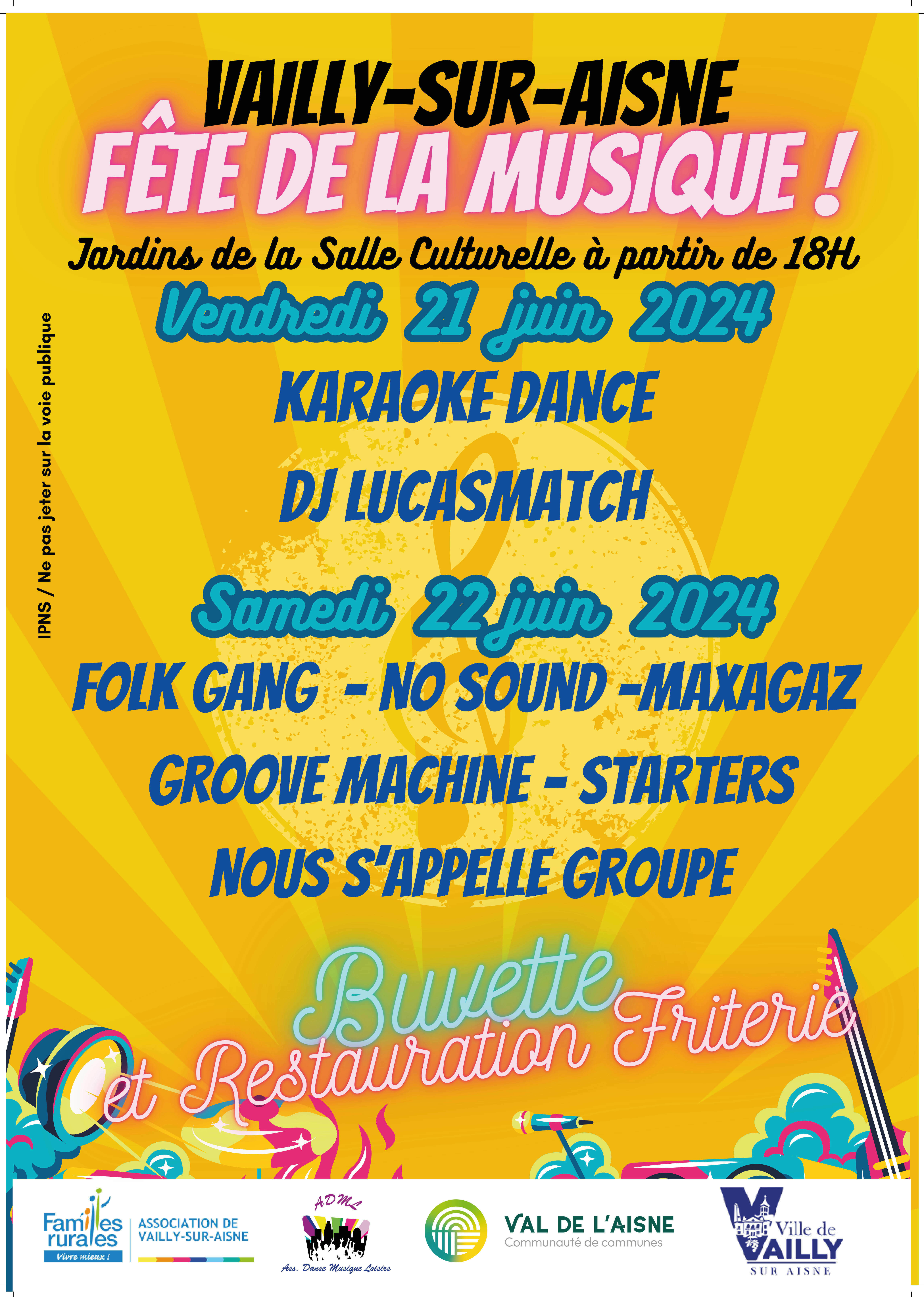 La Ville de Vailly sur Aisne vous propose les 21 et 22 juin, deux soirées fête de la musique dans les jardins de la salle culturelle, place Bouvines