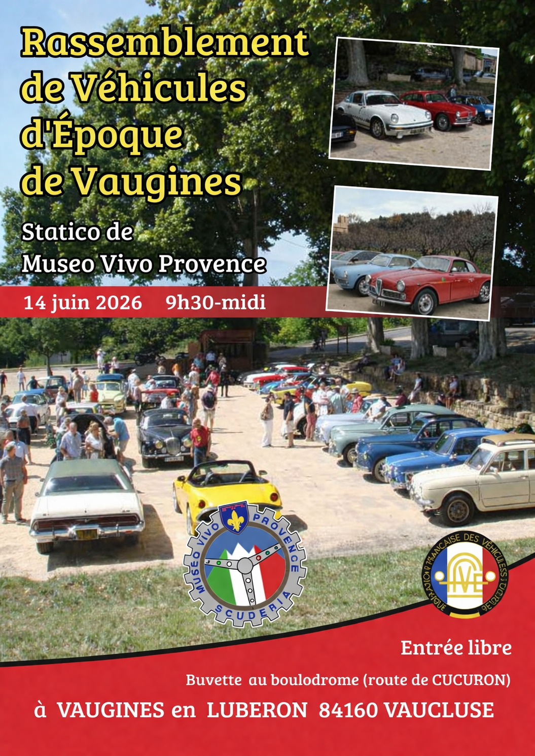 RV dimanche 14 Juin 2026 de 9h30 à 12h sur la Place du Boulodrome – Route de Cucuron à Vaugines.