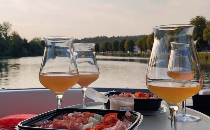 Passer un agréable moment de 1h10 autour d'un verre de limonade saveur mirabelle ou biere sans alcool et une assiette apéritif (charcuterie, [...]