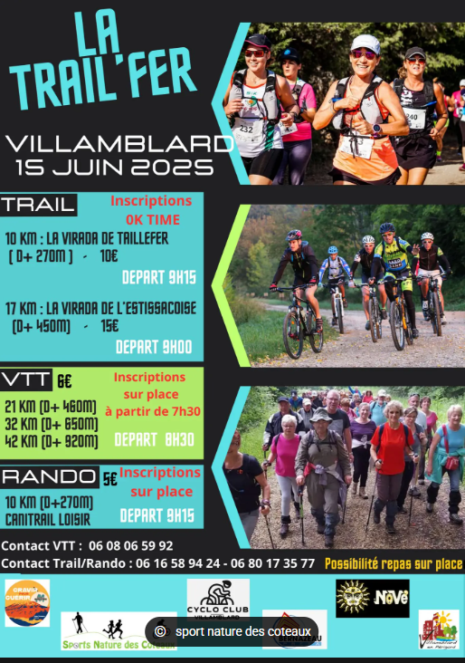 Le Trail’Fer est un évènement de pleine nature proposant 2 courses de 10 km (la Virada de Taillefer) et 17 km (la Virada de l’Estissacoise) sur les chemins de Villamblard, St Jean d’Estissac et St Hilaire d’Estissac.