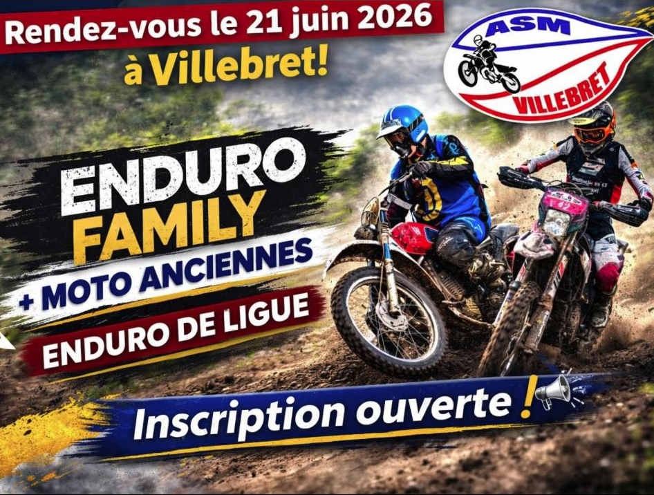 Inscriptions Enduro Family + Moto Ancienne : https://ffm.engage-sports.com/motos-anciennes-et-family-enduro-villebret-2026/inscription/