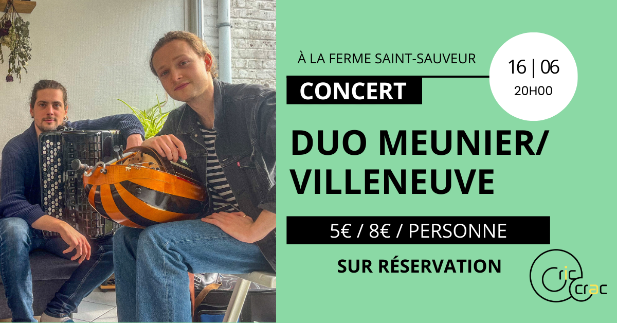 Billetterie : https://www.helloasso.com/associations/cric-crac-compagnie/evenements/concert-duo-meunier-villeneuve