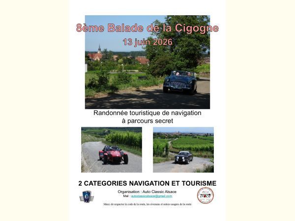 La 8ème Balade de la Cigogne, organisée le 13 juin 2026 par Auto Classic Alsace, est une randonnée de navigation dédiée aux véhicules historiques, mêlant plaisir de conduite et sens de l’orientation.